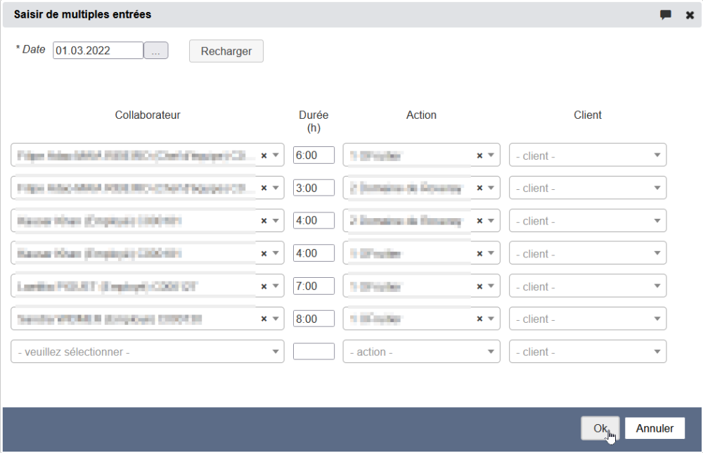 Saisie journalière multi-collaborateur (optionnel) dans les cas où un responsable d'équipe doit le faire pour les autres :